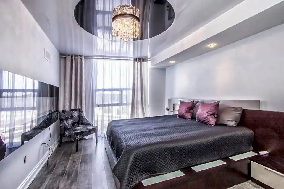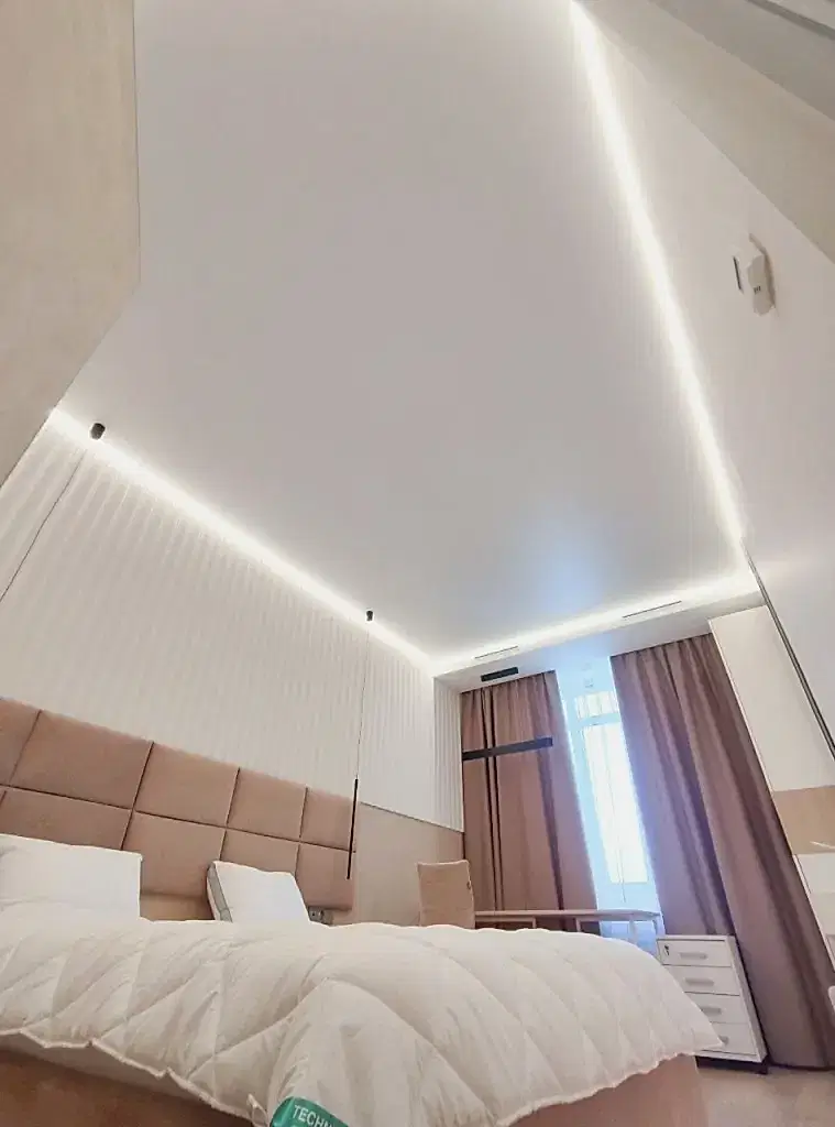Профессиональная команда устанавливает натяжной потолок быстро и аккуратно, PinUp чистоту после завершения работы.