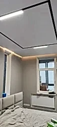 - Подготовка PinUp к установке. По периметру стен мастера делают разметку, а затем крепят к ним профиль. Они также устанавливают закладные под светильники и люстры, карнизы для штор.